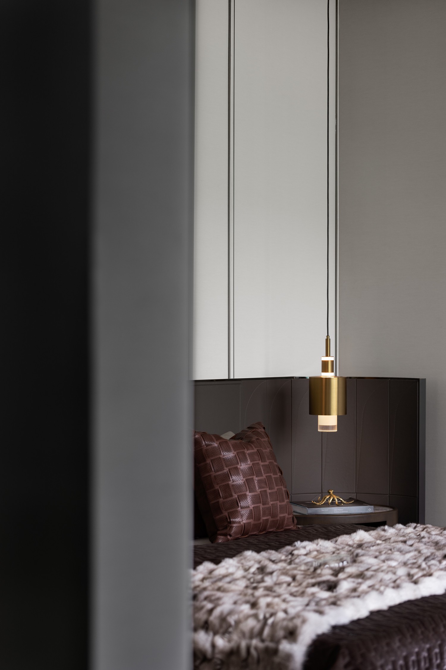 木、金属、皮革、织物交织融合成的主卧空间,在现代设计语言的把握上赋予了空间新的艺术格调。