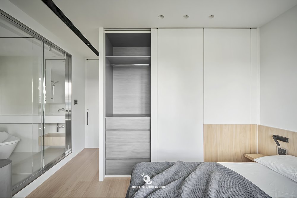 - 客房因为预算考量整体都用系统柜来做,现在系统柜的质感比过去好很多,所以连卧榻或是层架都能做的很简洁俐落。