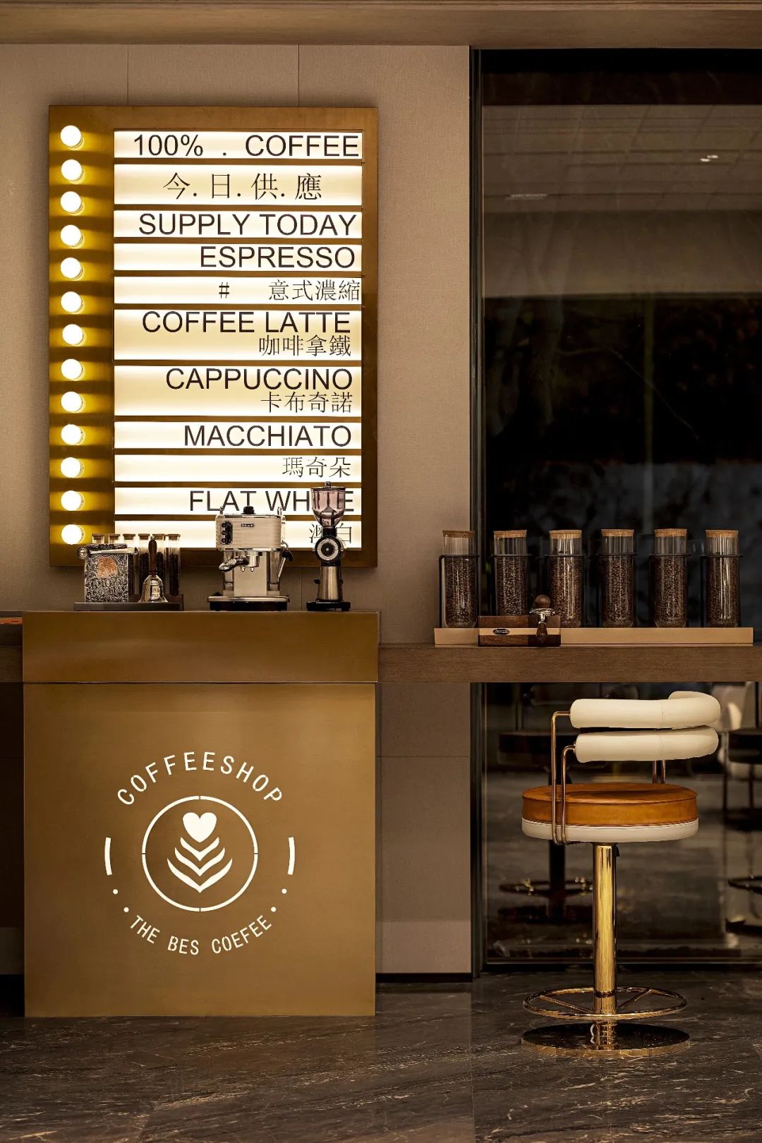 呼应早咖晚酒生活形态,将装置树植入空间中,配合乐器,营造出现场演唱会气氛。一面是新科技感的艺术装置树,一面是具有极高质感的红色砖造型墙与熊熊火炉、红与金的搭配,新旧的碰撞焕发着十足的空间张力。