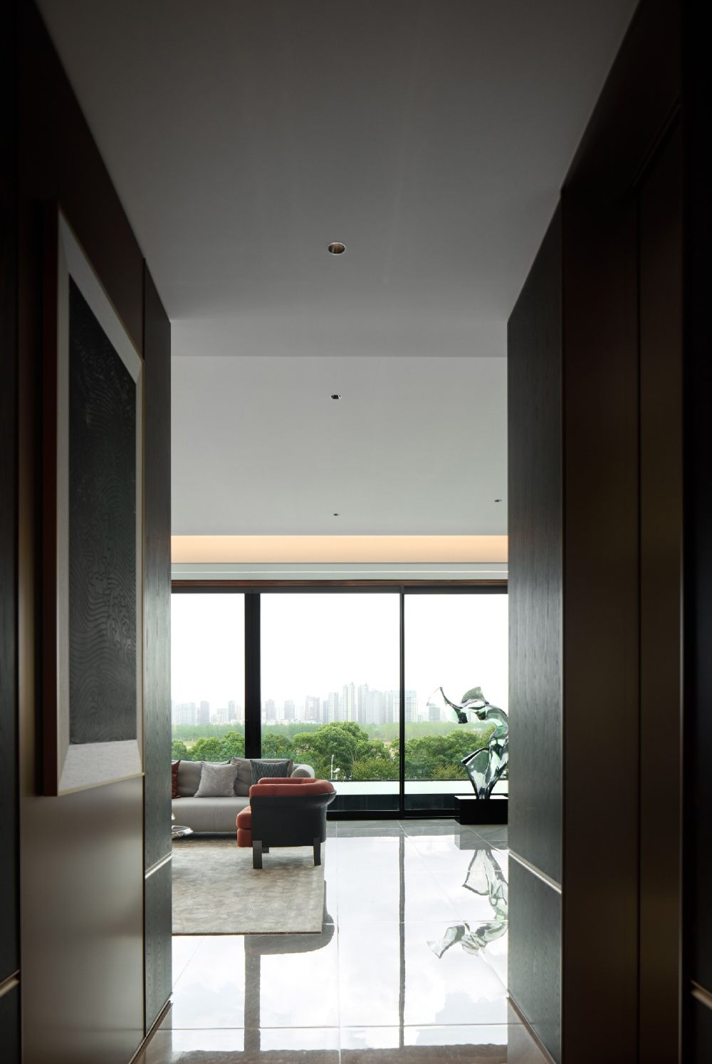 饱含渐变美感的轮廓,激活了深浅木色的细腻感,与诗意盆景相邻,碰撞出人文与自然共通的美学意境,从初始阶段便注入了别样的生活情趣。嵌入自然奢石,以简约配色凸显艺术气质,定义了空间深层的审美与涵养。