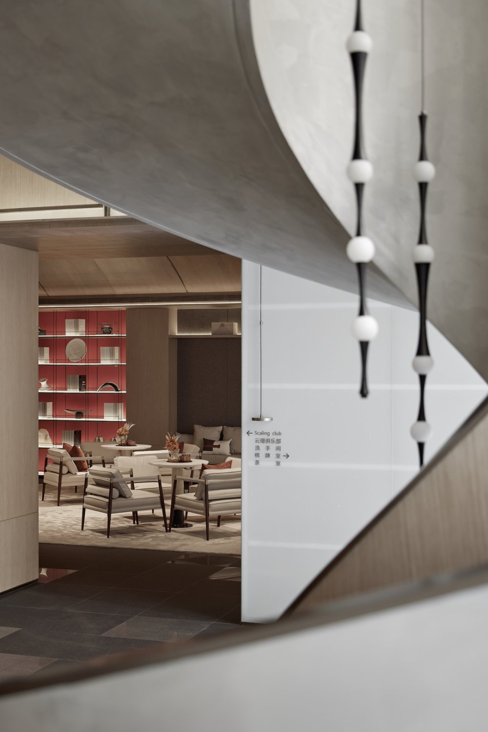 对于层与层之间的连接,楼梯旋转似一抹飘带扶摇而上,保持造型与质感的合适距离,就能探索出有温度有情感的设计,人们在上下穿行时会保有一丝别样的期待。